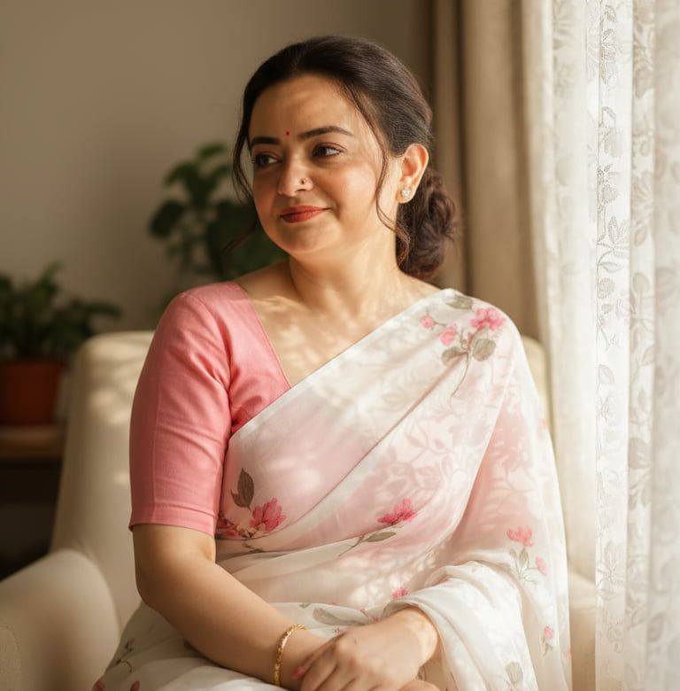 वे भीड़ में अलग दिखने की कोशिश नहीं करतीं। उनकी पहचान — उपस्थिति की शांति है।